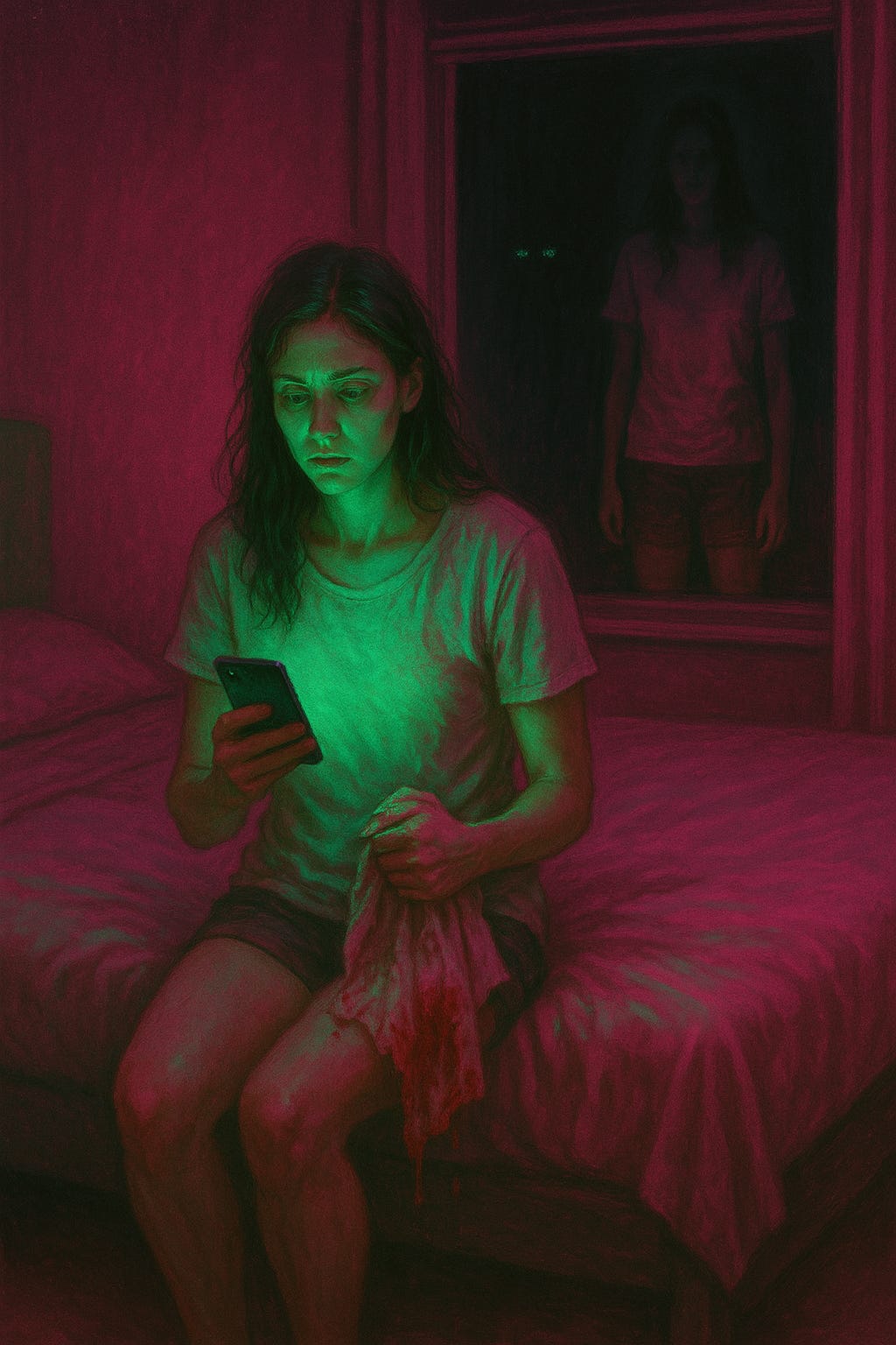 A powerful, haunting piece. The unsettling feeling of waking in the middle of the night, caught between dream and reality, feels like being pulled into the raw edge of midnight... where memory, desire, and fear collide. I love how the ordinary details carry so much emotional weight: the chipped ceramic cup and “his shirt,” the question “Is that me? Really?” The incoming call and doorbell blur the line between intimacy and dread, while the command to “say it” builds tension, pointing to desire and making the ending feel both inevitable and terrifying.